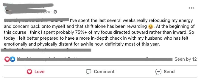 So, that has had implications in everything in my life. Not just my relationship, but the way I express myself with friends, or at work, and that has been a big shift.